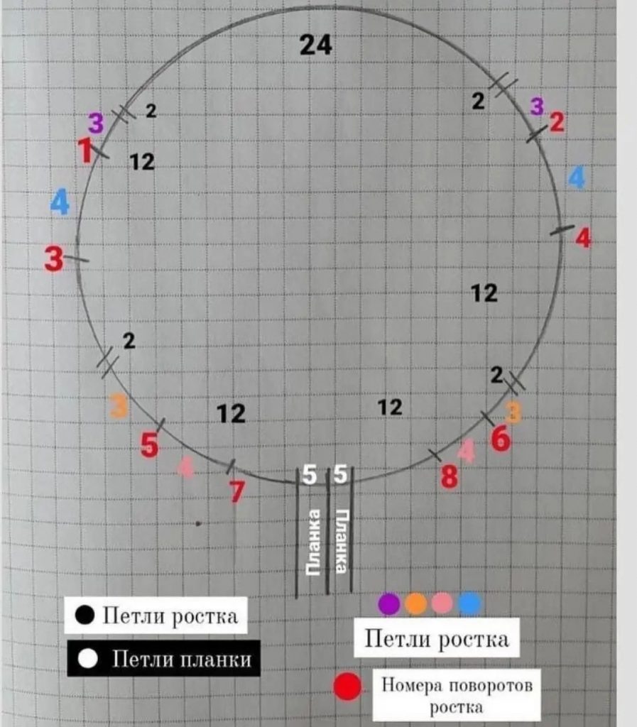 Рассчитываем петли для формирования реглана (как показано на схеме № 1):