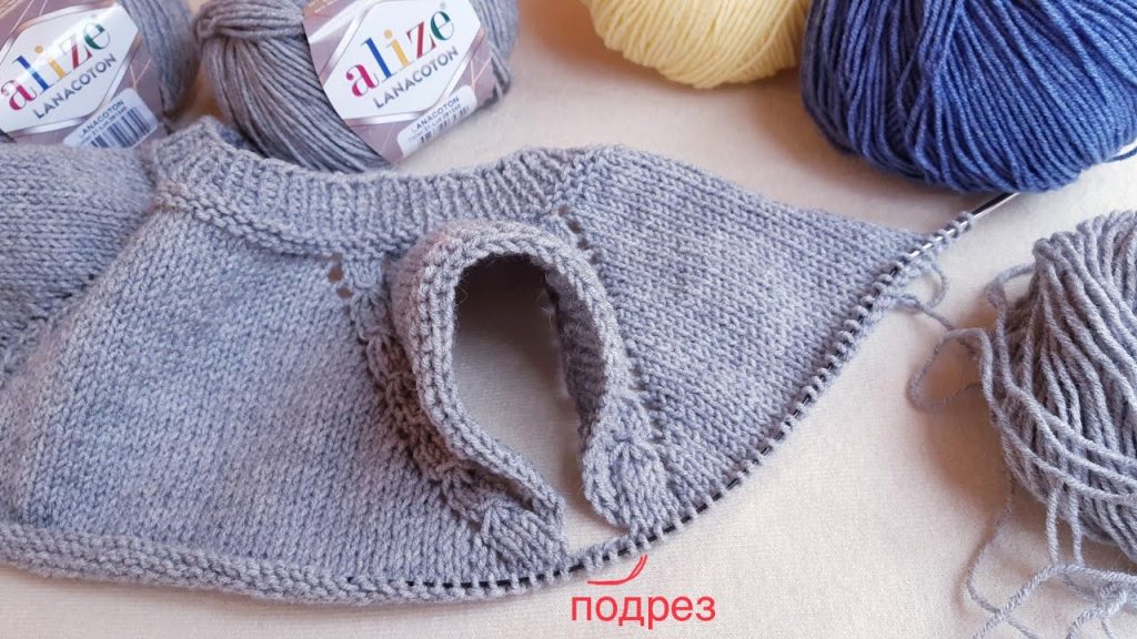 П. рукавов перенести на прямые спицы толщиной 4 мм. Соберите п. подреза.