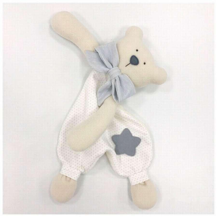 Игрушка мишка и комфортер мишка выполнены в одном направлении, но у комфортера привычная форма звезды, отсутствует тугая набивка внутри. В общем, как и требуется – он мягкий, комфортный и о его принадлежности к медвежьему роду говорит только голова, и одна из сторон тела – плюшевая, тогда как друга – х/ткань.