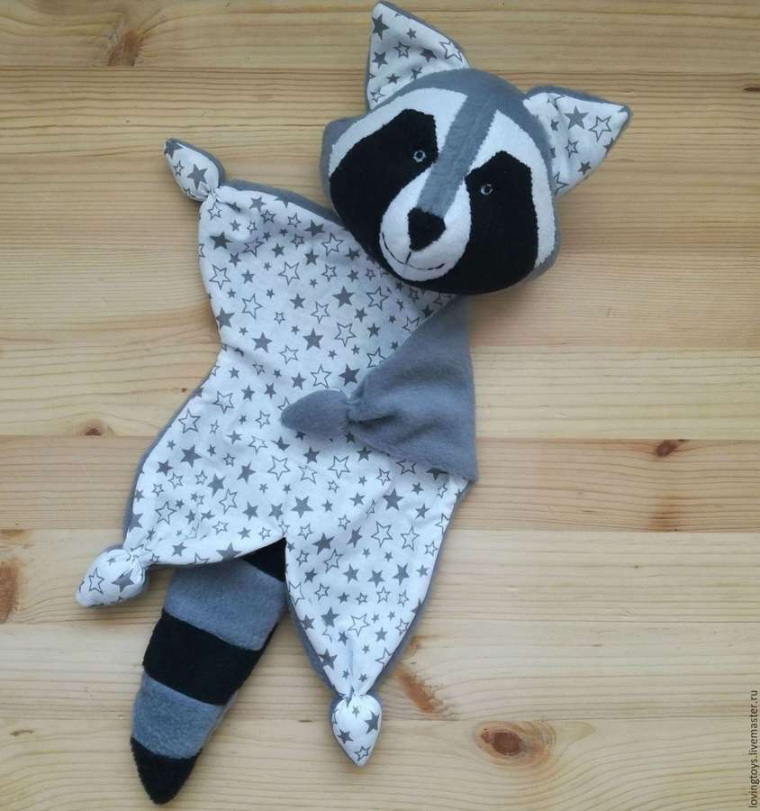 Существует множество примеров по созданию комфортеров-слоников, медвежат, а также других зверят. Здесь представлен мастер-класс по изготовлению игрушки-комфортера Зайка и есть выкройка с размерами.