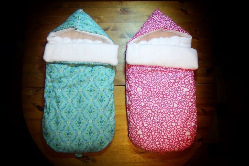 - Для самых маленьких лучше пошить конверт-кокон, способный запеленать ручки. Так ребенок не раскутается и не повредит себе ничего;