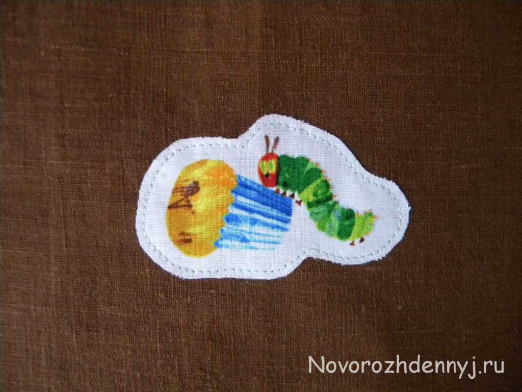 Пристрочите аппликацию к ткани, используя машинный прямой шов с интервалом 2. Если вы хотите сделать нашивку из трикотажной ткани, предварительно укрепите ткань флизелином с изнаночной стороны.
