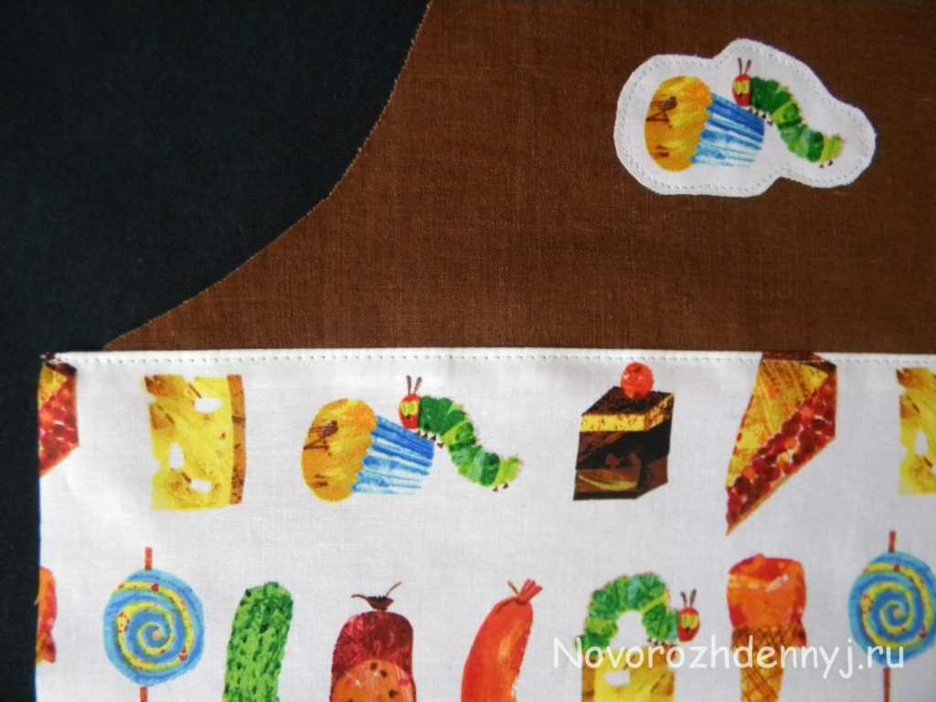 По желанию вы можете сделать карман с 1-3 отсеками. В нашем уроке мы сделаем два отсека – один узкий (например, для ручки) и один пошире – для важных предметов маленького повара. Просто определяем ширину каждого отсека и прострачиваем в нужном месте.