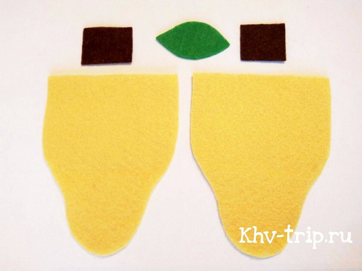 Вырезаем детали, как показано ниже. Должно получиться два лекала груши и черешков, одно лекало листика.
