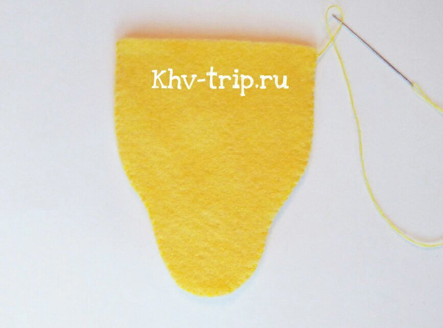 Простым обмёточным швом сшиваем две детали груши между собой, оставляя верхнюю часть не прошитой.