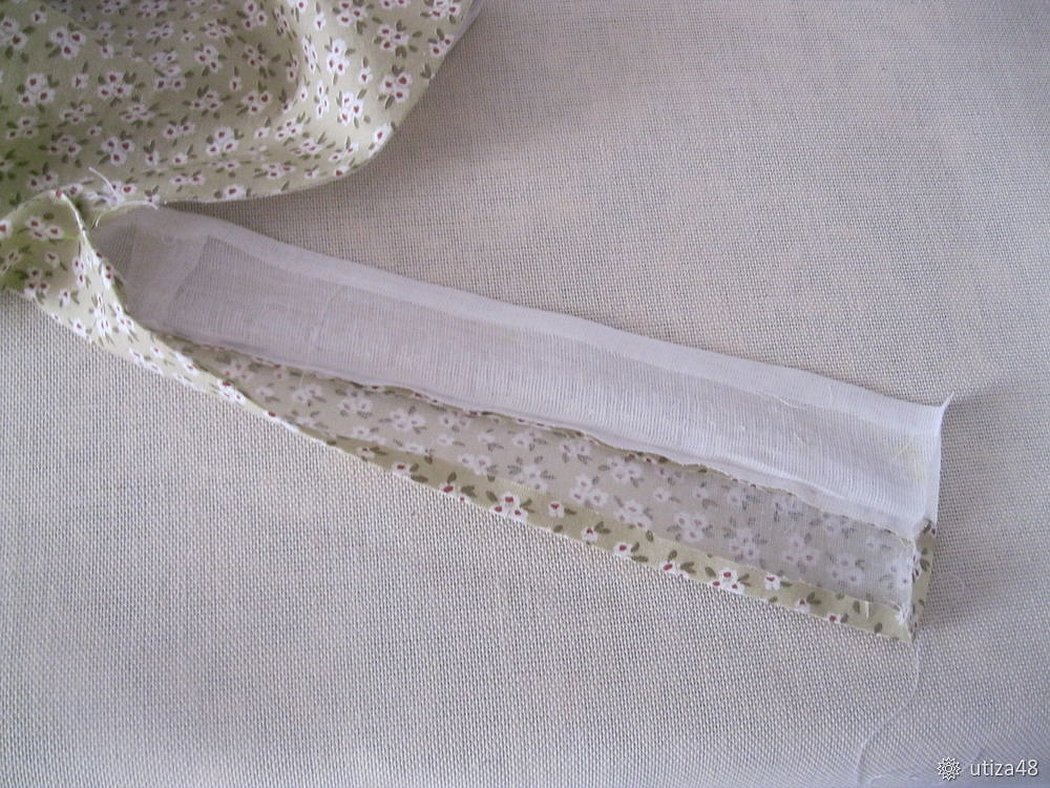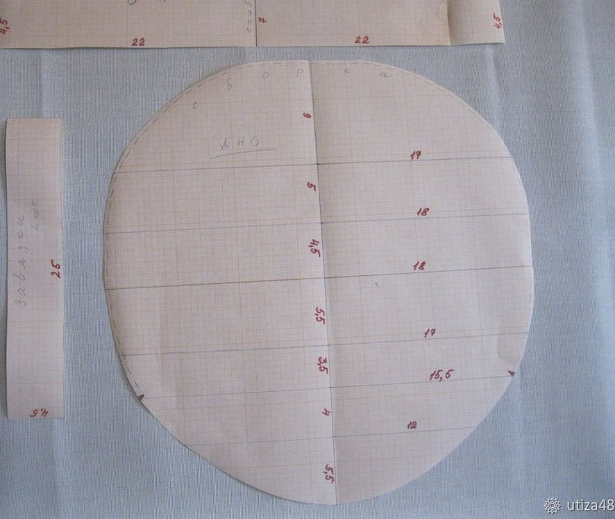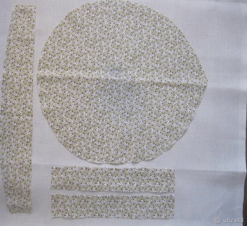 Каждая из упомянутых частей вырезается из основной натуральной ткани и из подкладочной. Виды материи выбираются по вкусу мастера.