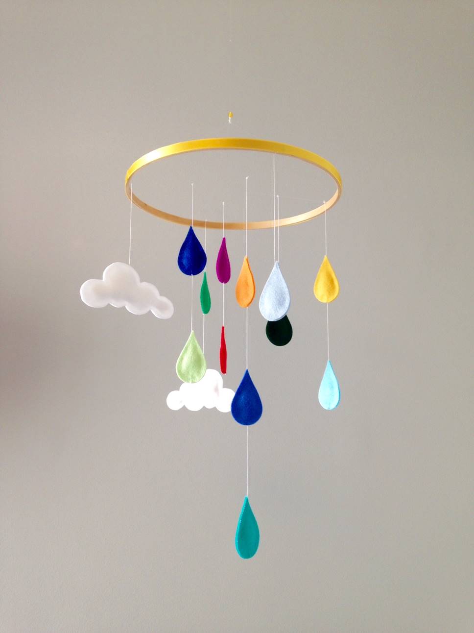 Мобиль – это вовсе не предмет интерьера, как, например, балдахин. Главное его предназначение – развлекать и развивать грудничка. Поэтому, как бы маме ни нравились нежные пастельные тона, для подвесных игрушек лучше выбрать яркие цвета. Для развития зрения новорожденных специалисты рекомендуют насыщенные оттенки – розовый, голубой, салатовый и др.