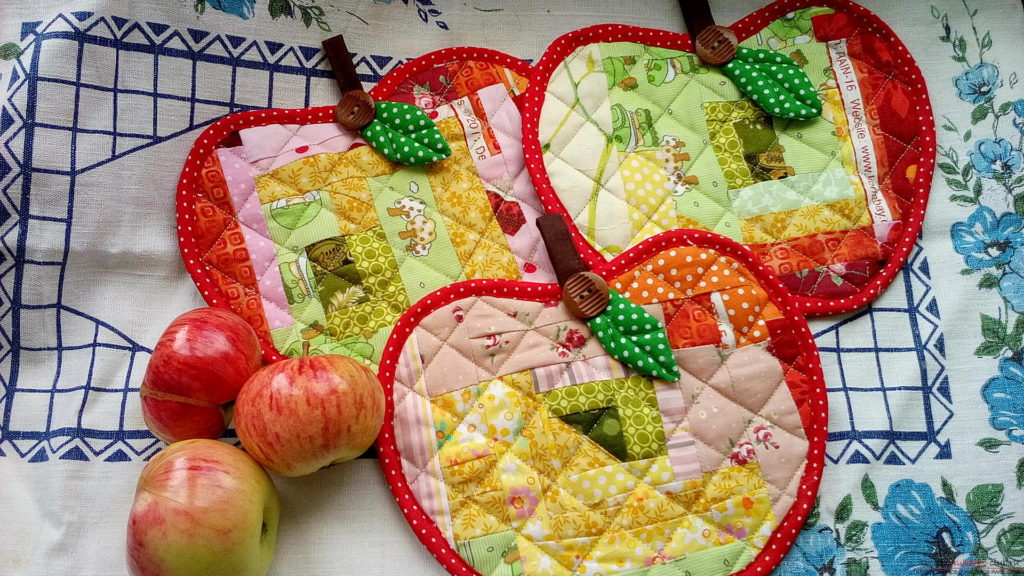 Но прихватка-бабочка в подобном виде не единственный вариант. Ее можно выполнить в форме яблока: