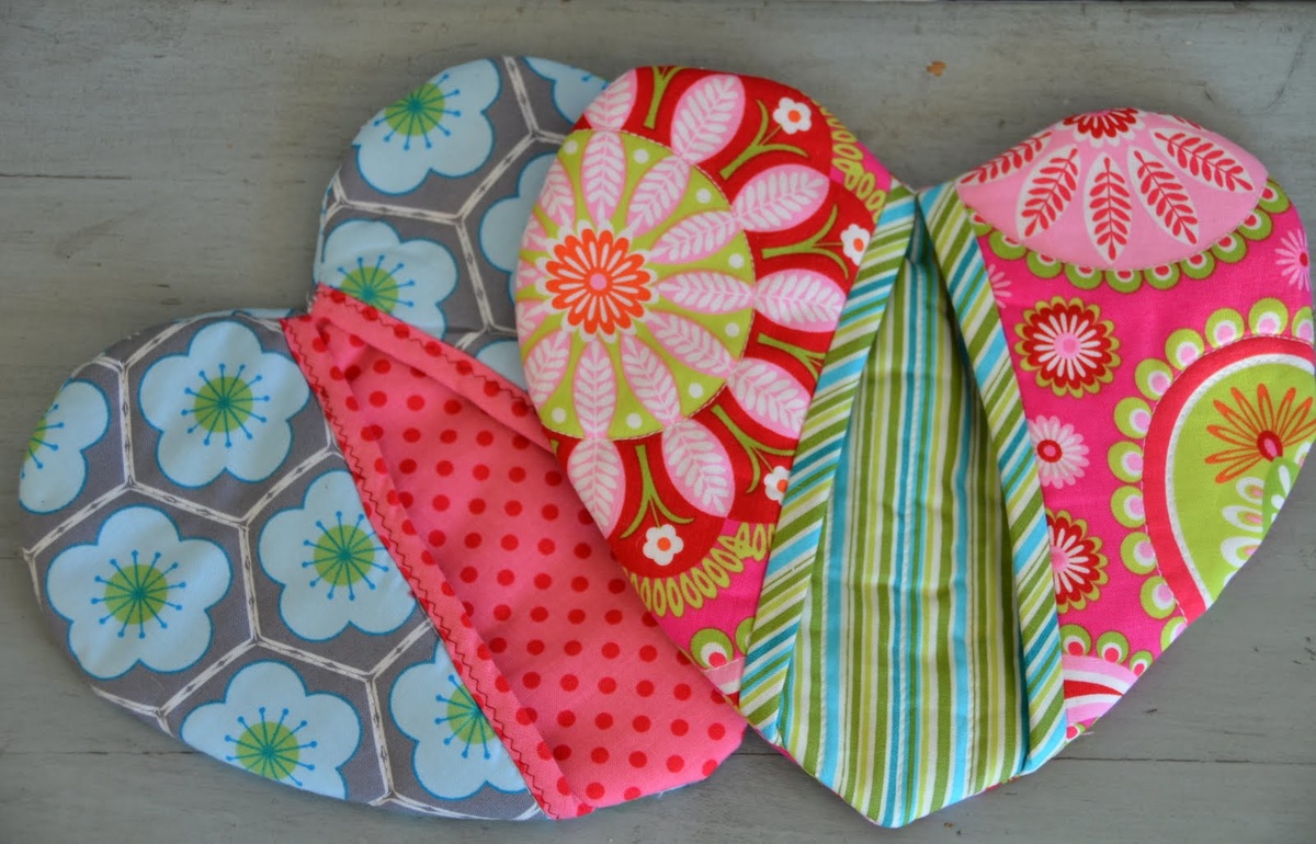 Вы можете выбирать не только оригинальные ткани, но и формы – сердечки и рукавички, клубнички и елочки, квадратики и звездочки. Также имейте в виду, что разные формы прихваток различаются по функциональности, а значит, лучше всего сделать полноценный универсальный набор: несколько квадратиков, длинная прихватка для кастрюль, варежка.