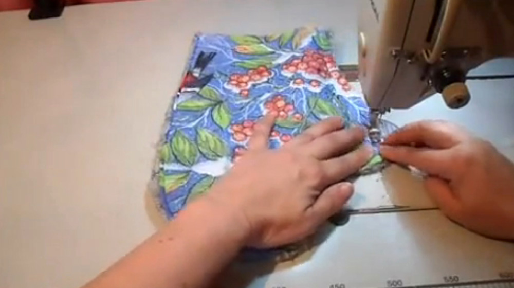 - Две заготовки сшиваются между собой с 3 сторон, при этом подкладка должна быть все так же наружу.