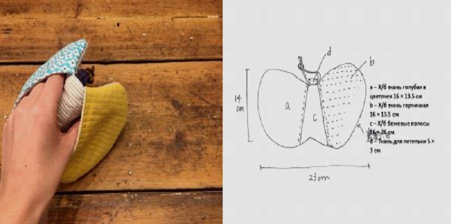 По этой выкройке прихватки бабочка панируется сшить прихватку с кармашками для рук.
