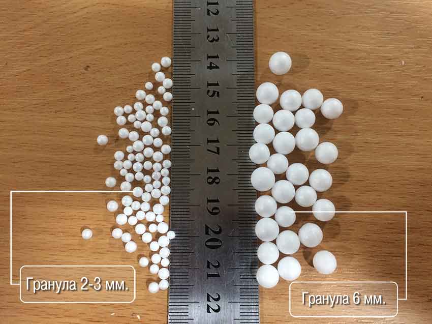 Для набивки мебели лучше использовать первичный пенополистирол – его гранулы имеют идеально круглую форму и имеют большую устойчивость к нагрузкам и деформациям. Размер шариков первичного пенополистирола бывает разной величины, но в нашем случае лучше использовать диаметр от 2 до 6 мм.