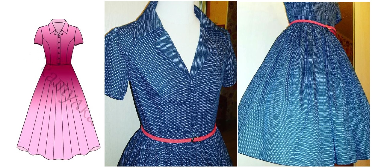 Для пошива этой модели подойдут тонкие плательные ткани, хорошо держащие форму – габардин, сатин, креп.