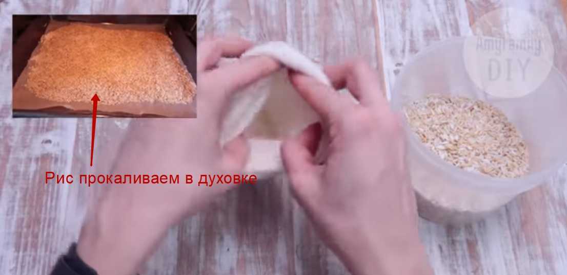 - Насыпьте в носки крупу, и замотайте кончик резинкой.