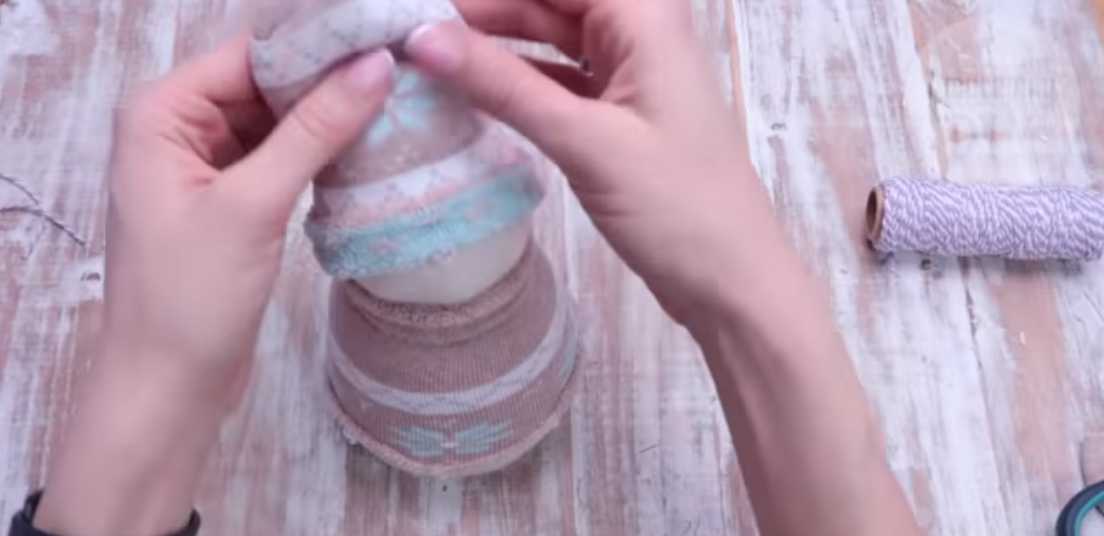 Одну из сторон опять собирают в пучок, формируя шапочку. Надевают на верхний шар.