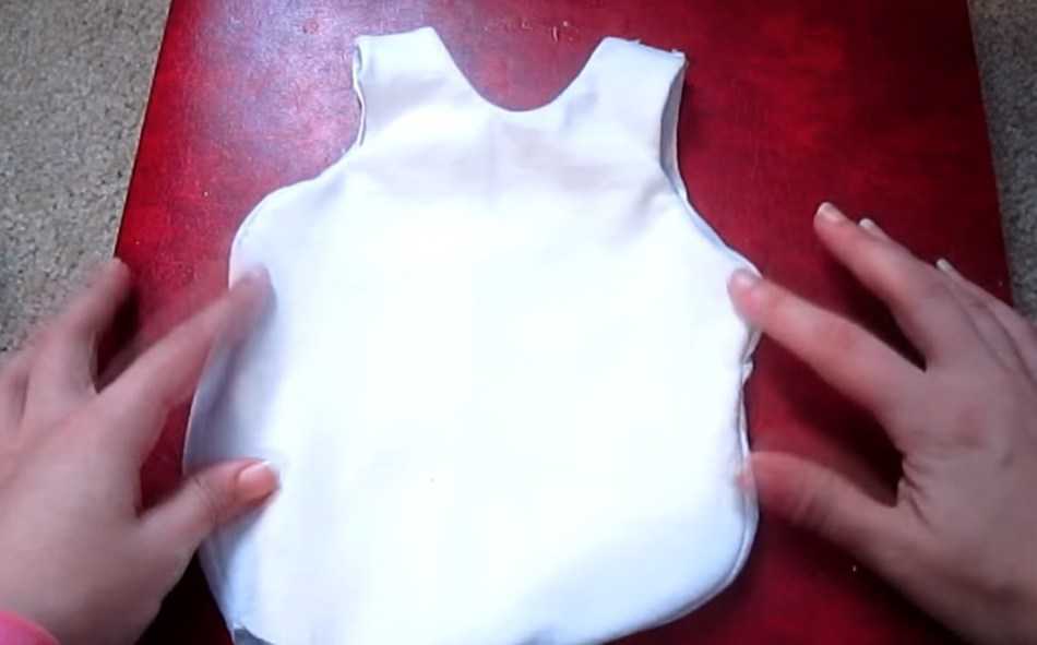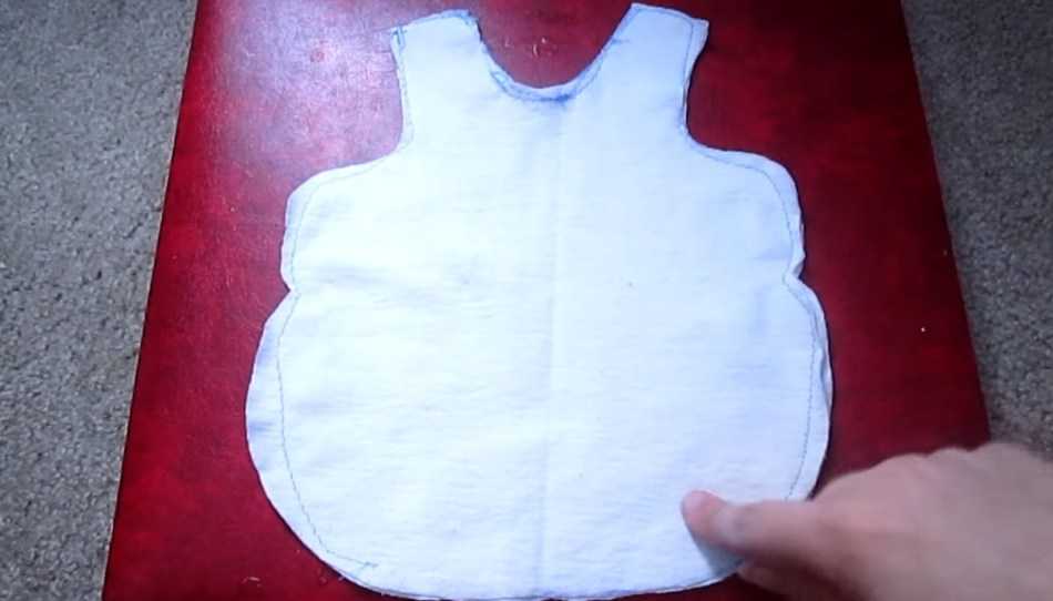 Выкройка костюма снеговика для его задней части будет мало чем отличаться от передней. Но на спинке должна быть липучка. Решить набивать спинку или нет, можно исходя из количества материала для набивки, который у вас есть. Если спинка будет мягкой, то для нее нужно выкроить четыре детали таких, как ниже. Если она будет без набивки — то таких деталей нужно две.