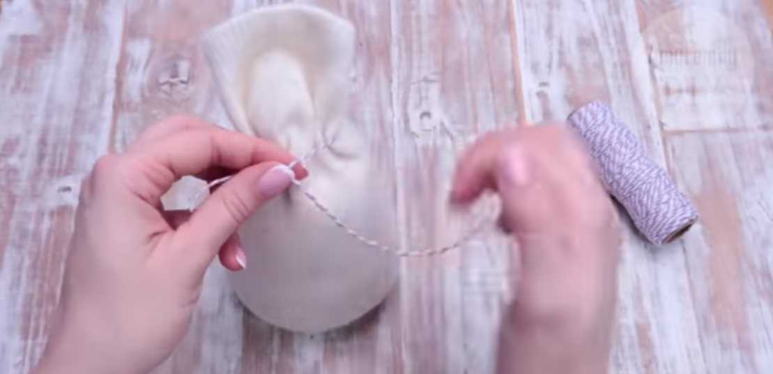 Берут изделие и формируют 2 шара, так чтобы верхний был меньше. Перетягивают резинкой.
