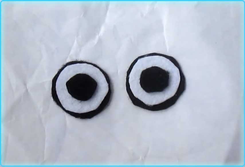 Берут клей пистолет и формируют глазки, носик. И не забывайте про пуговки.