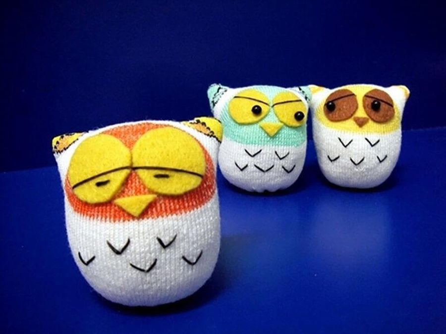 - Использовать женские и детские носки лучше, т.к. в мужских редко найдутся подходящие по цветам и фактуре носки (однако, для совы подошел именно мужской носок, но это скорее исключение).