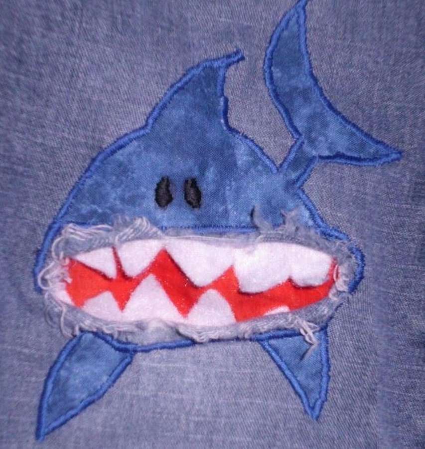 В принципе, это тоже рыба из трикотажа, но…. Аппликация вполне отражает мужское понятие об аккуратности, особенно в молодости. Применение столь яркого декора может быть продиктовано стремлением подчеркнуть свою индивидуальность, а возможно, это просто дань свободе самовыражения.