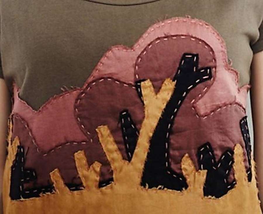 Это футболка с аппликацией, детали которой крупным планом публиковались выше. Цветовая гамма, к счастью, не вызывает ассоциаций с попугаем.