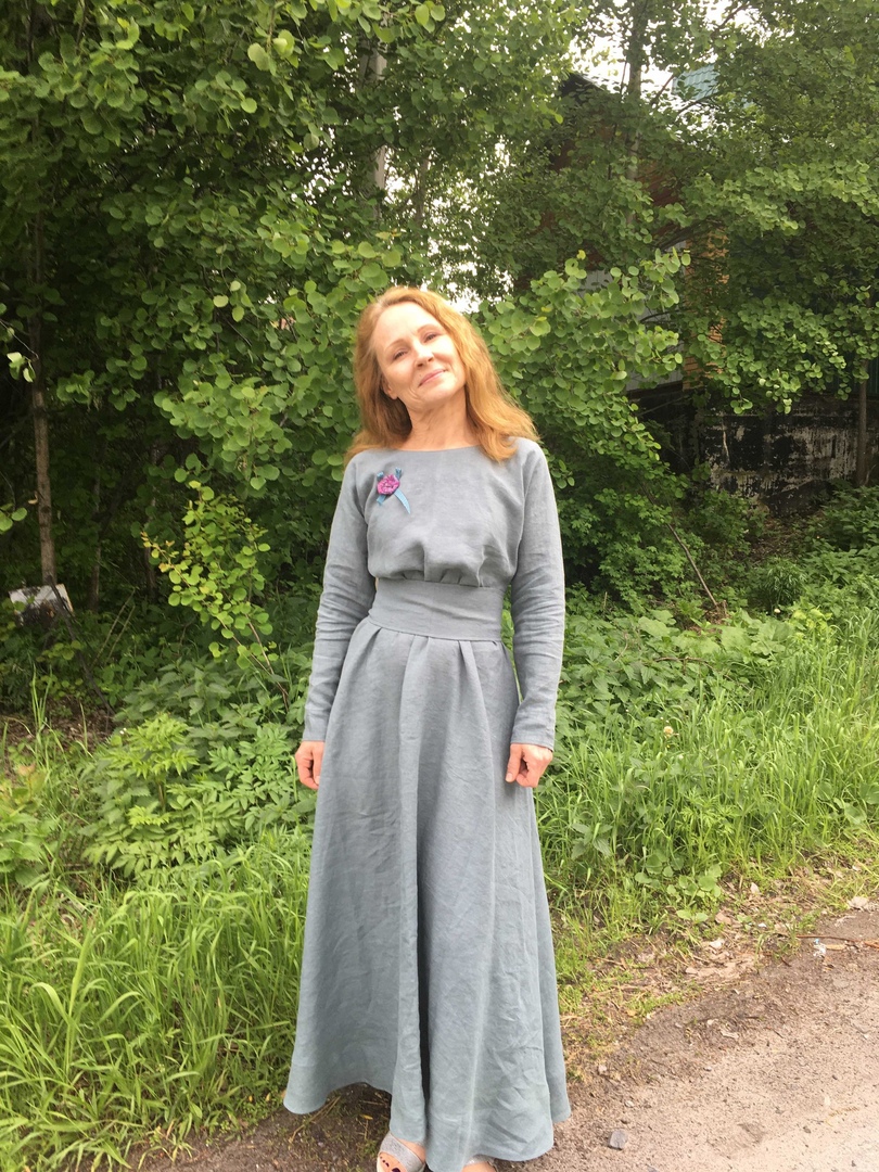 Низ платья осноровила, получилось ровно, чему очень рада. Обтачку утяжелитель выкроила и подшила, рукава также обработала обтачкой вовнутрь. Курс по пошиву платья изо льна принес тихую внутреннюю радость, какую не получала давно от пошива одежды. Платье поэтому и называется оберег, так как высвобождает внутреннюю божественную энергию, которая ставит щит и оберегает человека от стрел и ударов. Благодарим вас за возможность участвовать в этом радостном процессе.Анна Плеханова