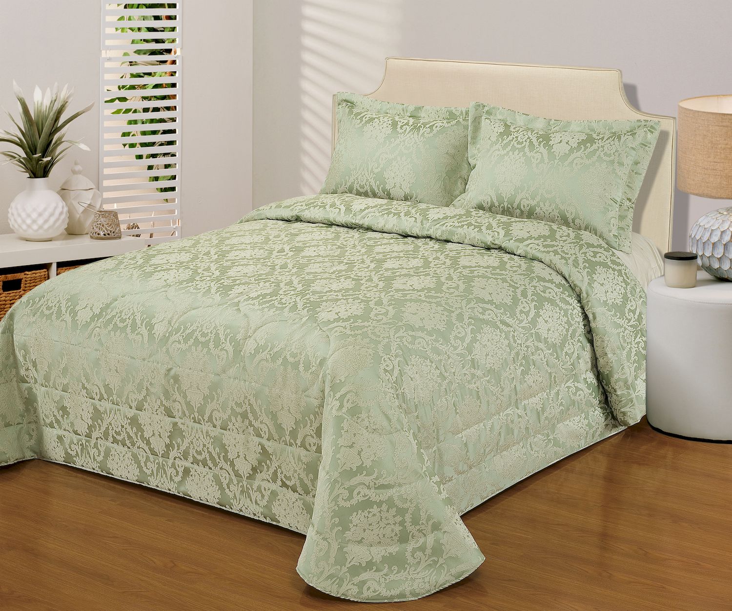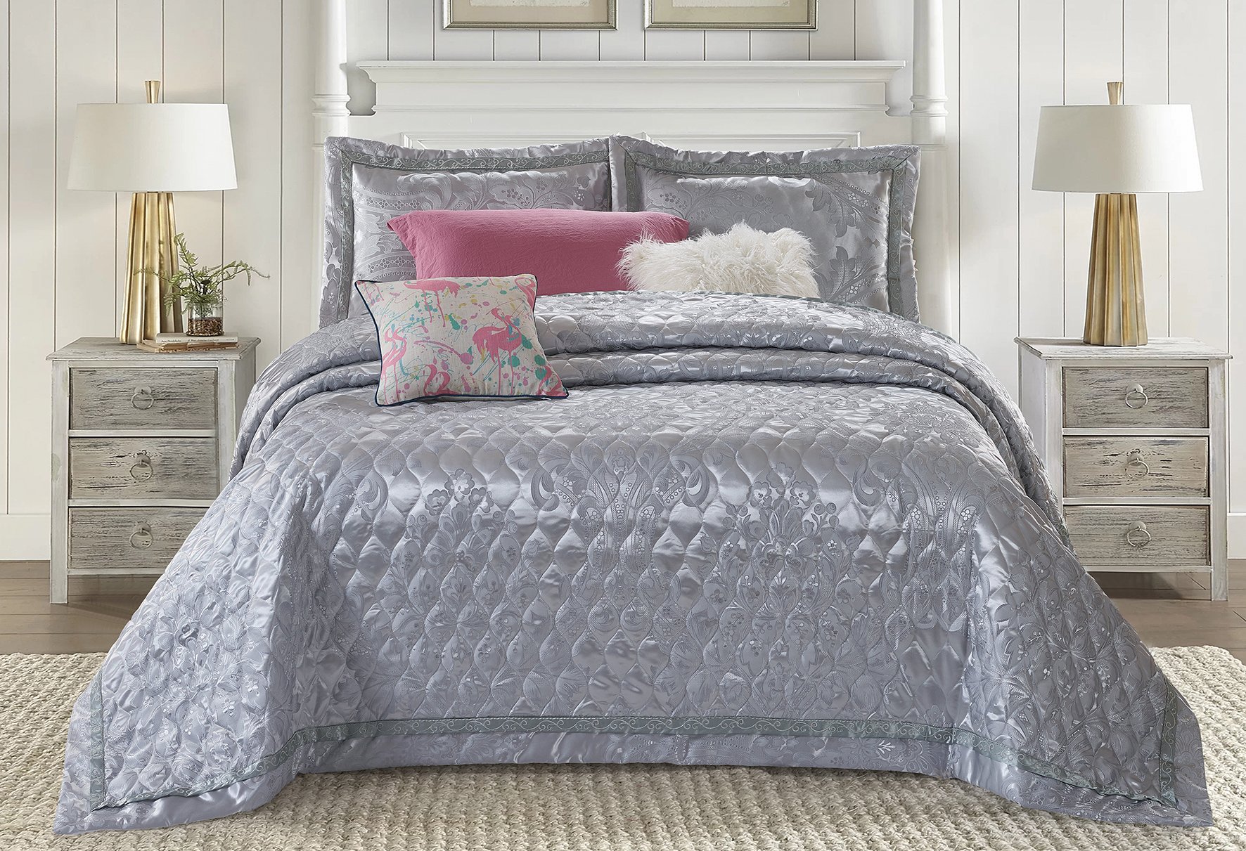 Жаккард. Жаккардовые покрывала очень прочны, красивы и надежны. Это один из немногих вариантов, подходящих не только для кроватей, но и для диванов – верхний материал почти не скользит. Переплетения нитей образуют самые разные узоры. Из минусов можно отметить высокую цену изделий, особенно дизайнерских экземпляров;