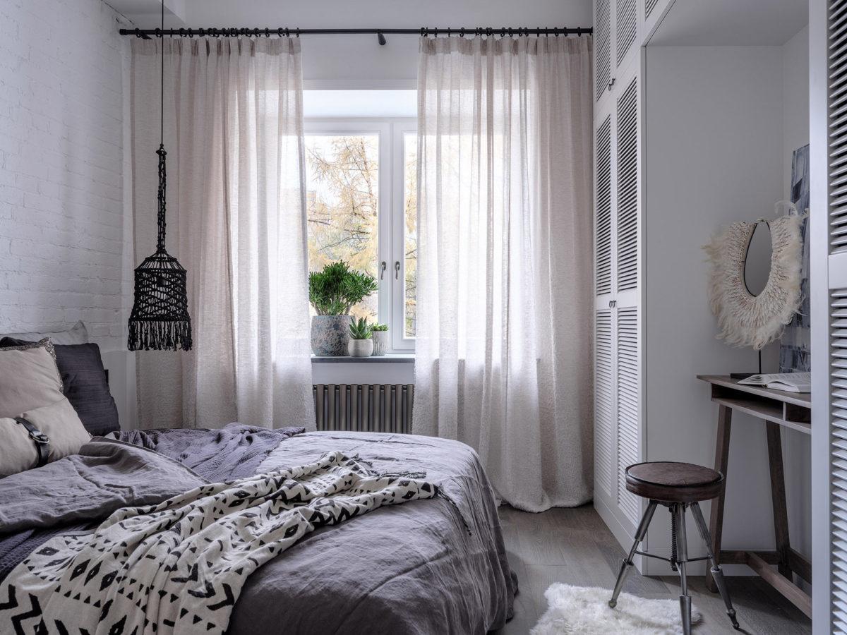 Первое достигается за счет открытых окон и искусственной подсветки, второе — за счет большой удобной кровати, подушек и одеял, в основе третьего — льняное или хлопковое постельное белье, тумбы из натурального дерева или столики из слэба.