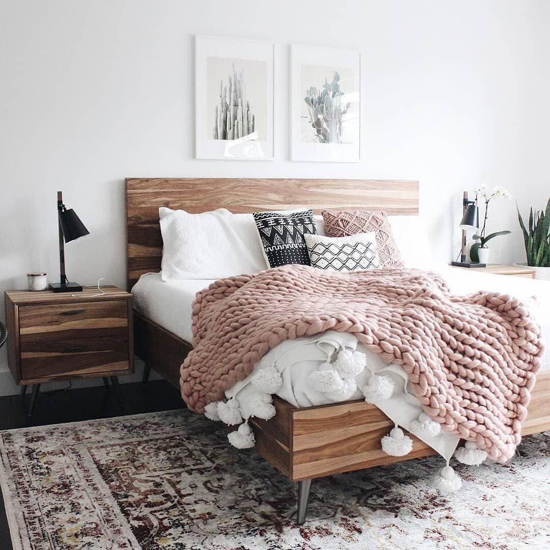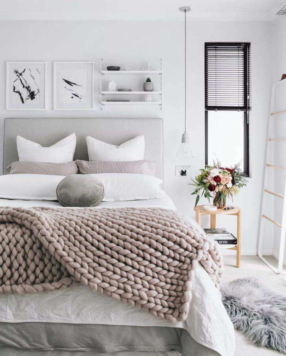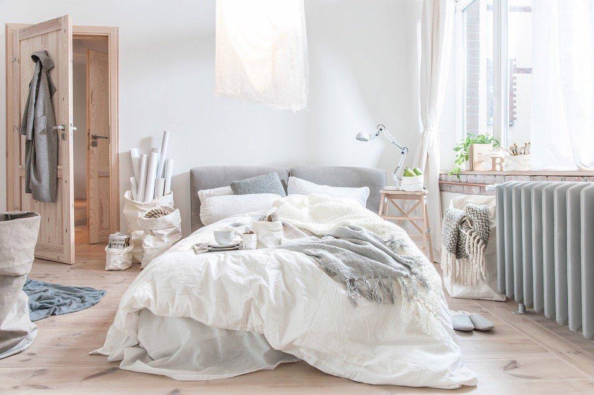 Спальня в стиле хюгге характеризуется тремя словами: светлая, расслабляющая, натуральная.