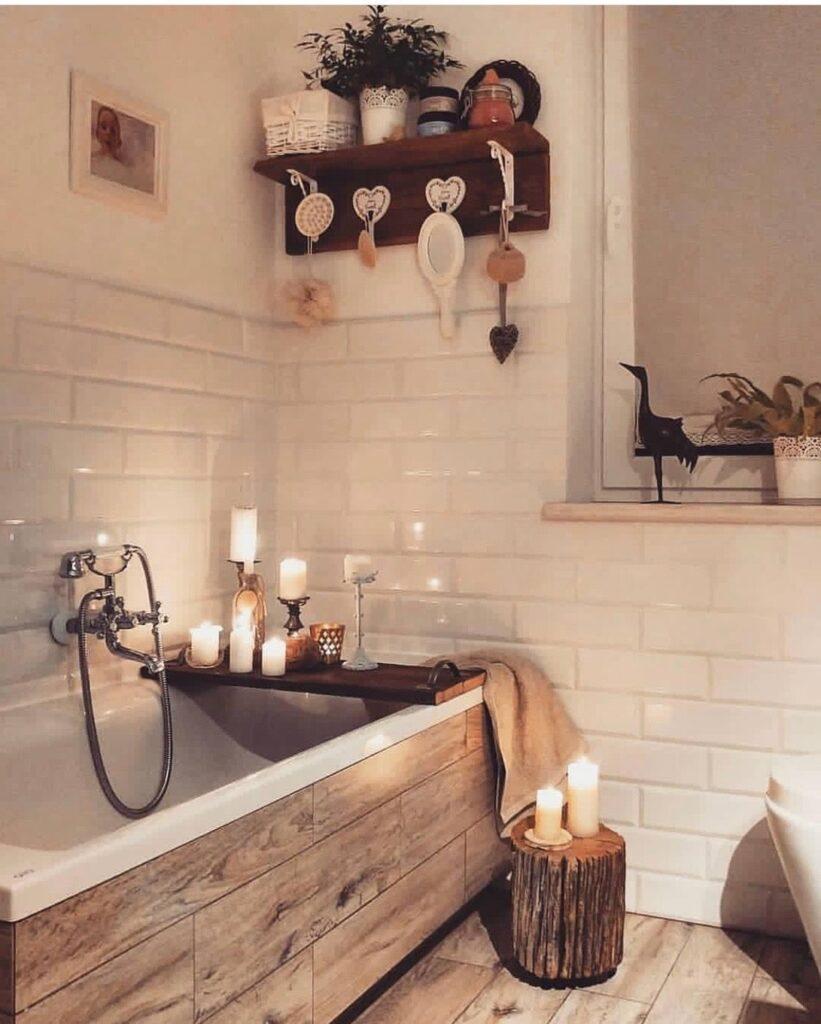 Создать уютную атмосферу помогут ароматизированные свечи, баночки с солью для ванн, плетёные корзинки для хранения косметики. Детали такого рода помогут привнести хюгге в помещение, не прибегая к капитальному ремонту и дорогостоящим приобретениям.