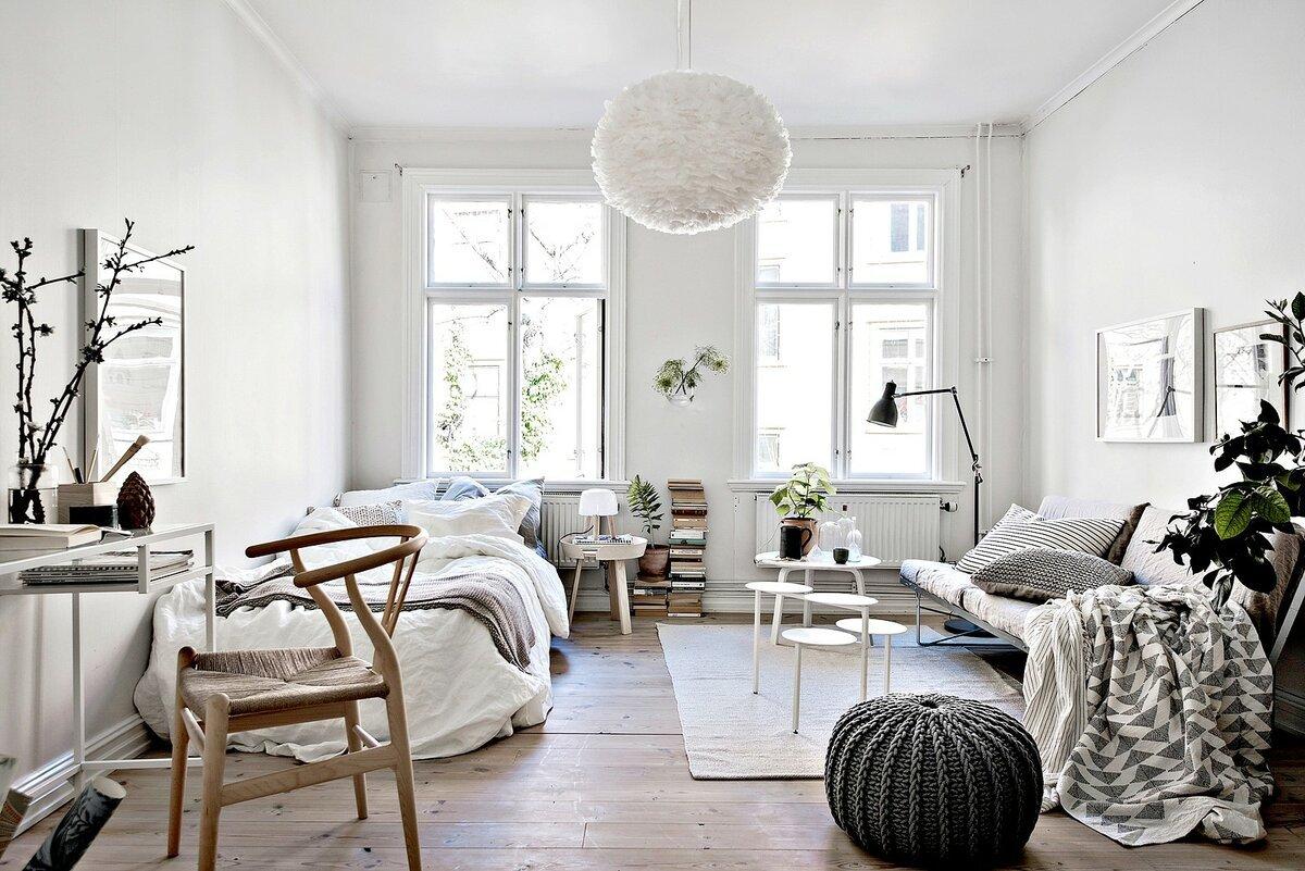 Интерьер в стиле хюгге «любит» свободное пространство, так что перегружать помещение предметами мебели не стоит. Датчане ценят рациональное потребление и такое же использование пространства.