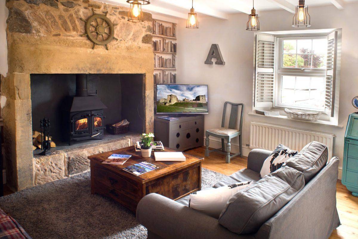 В хюгге-стилистике допустимо оформлять практически любую комнату. В гостиной разместится мягкий диван с вязаными подушками, украшенными пуговицами, косами и аранами. Между ним и камином ставят журнальный, чайный столик либо предназначенный для настольных игр.