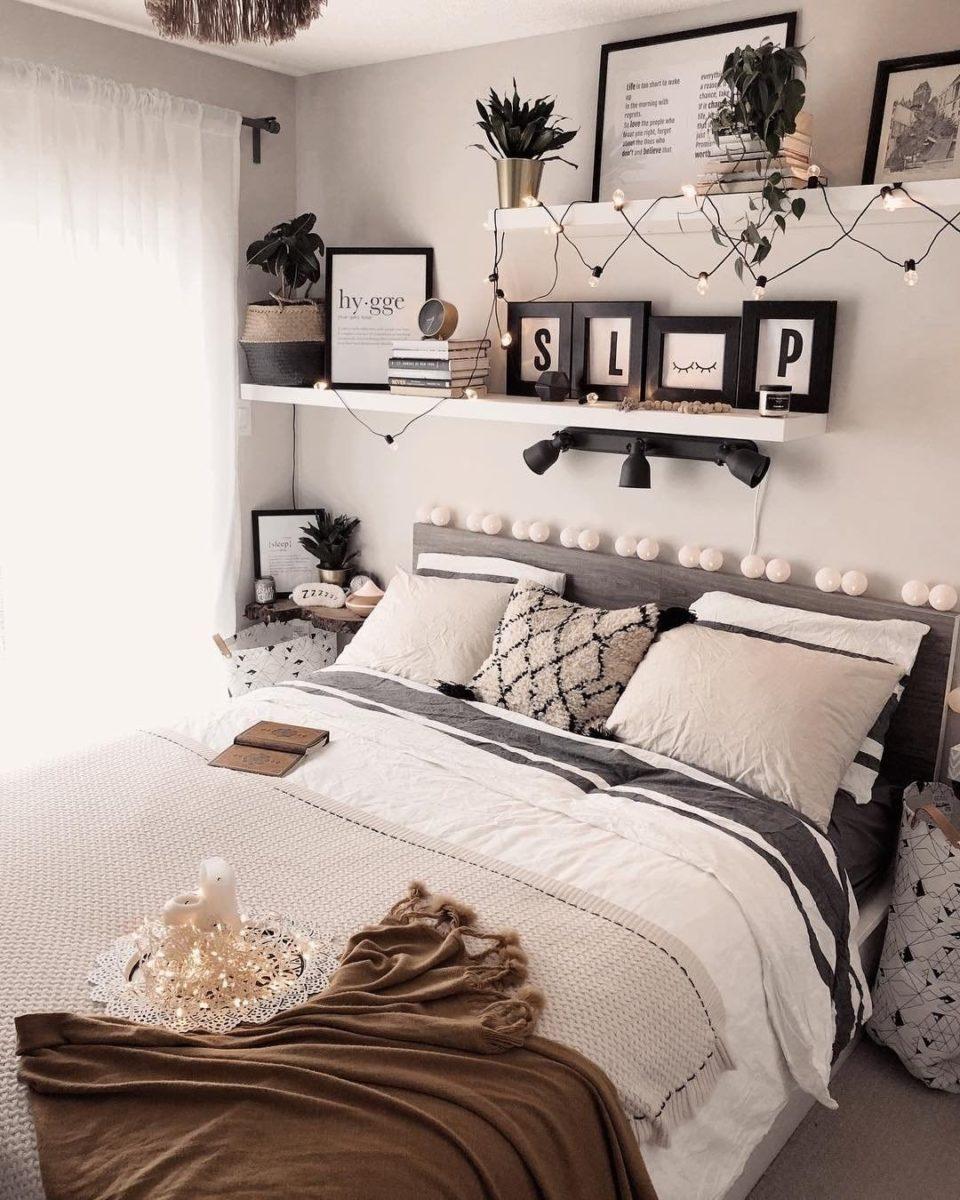С другой стороны, можно заполнить всё пространство: повесить на стену несколько чёрно-белых постеров, купить гирлянды, раскидать подушки по всем возможным плоскостям