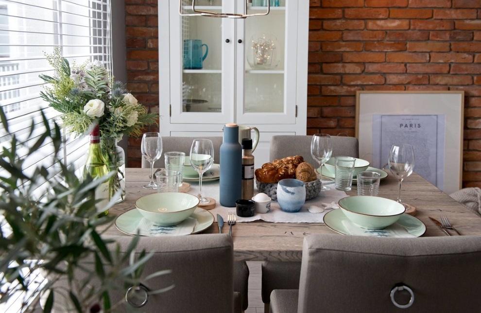 Добавить хюгге в интерьер поможет внимание к оформлению посуды. В сервировке используются глубокие миски из керамики, подносы из дерева, чайники интересного дизайна, прихватки и грелки
