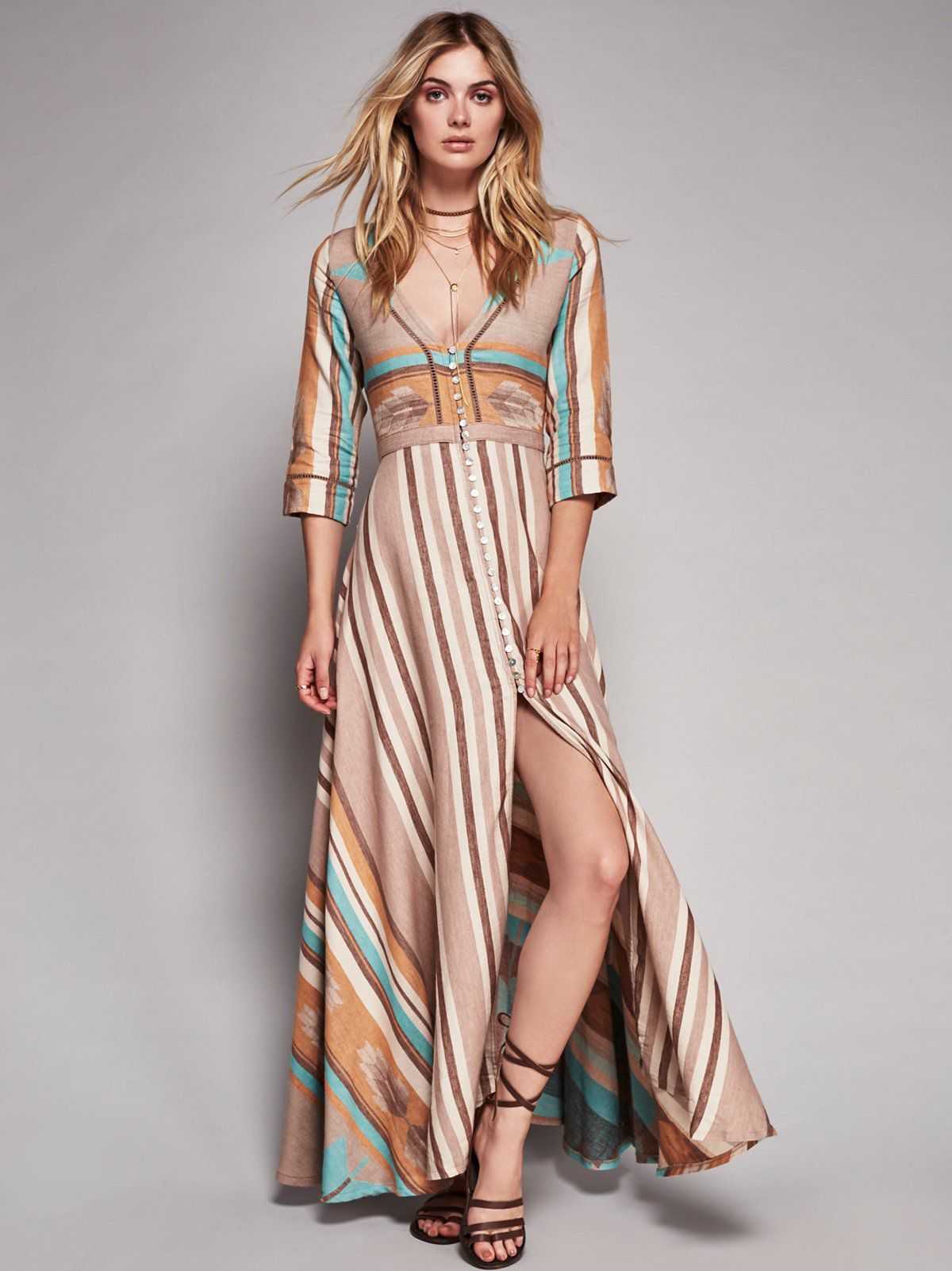 Изначально он был создан для жаркой погоды. Но теперь его носят и осенью, и даже зимой! Конечно, придется немного утеплиться, но в результате вы получите невероятно эффектный образ. Например, цветные плотные колготки и шарфик на шее прекрасно дополнят платье. Кроме того, ботинки или сапоги на плоской подошве хорошо сочетаются с этим стилем.