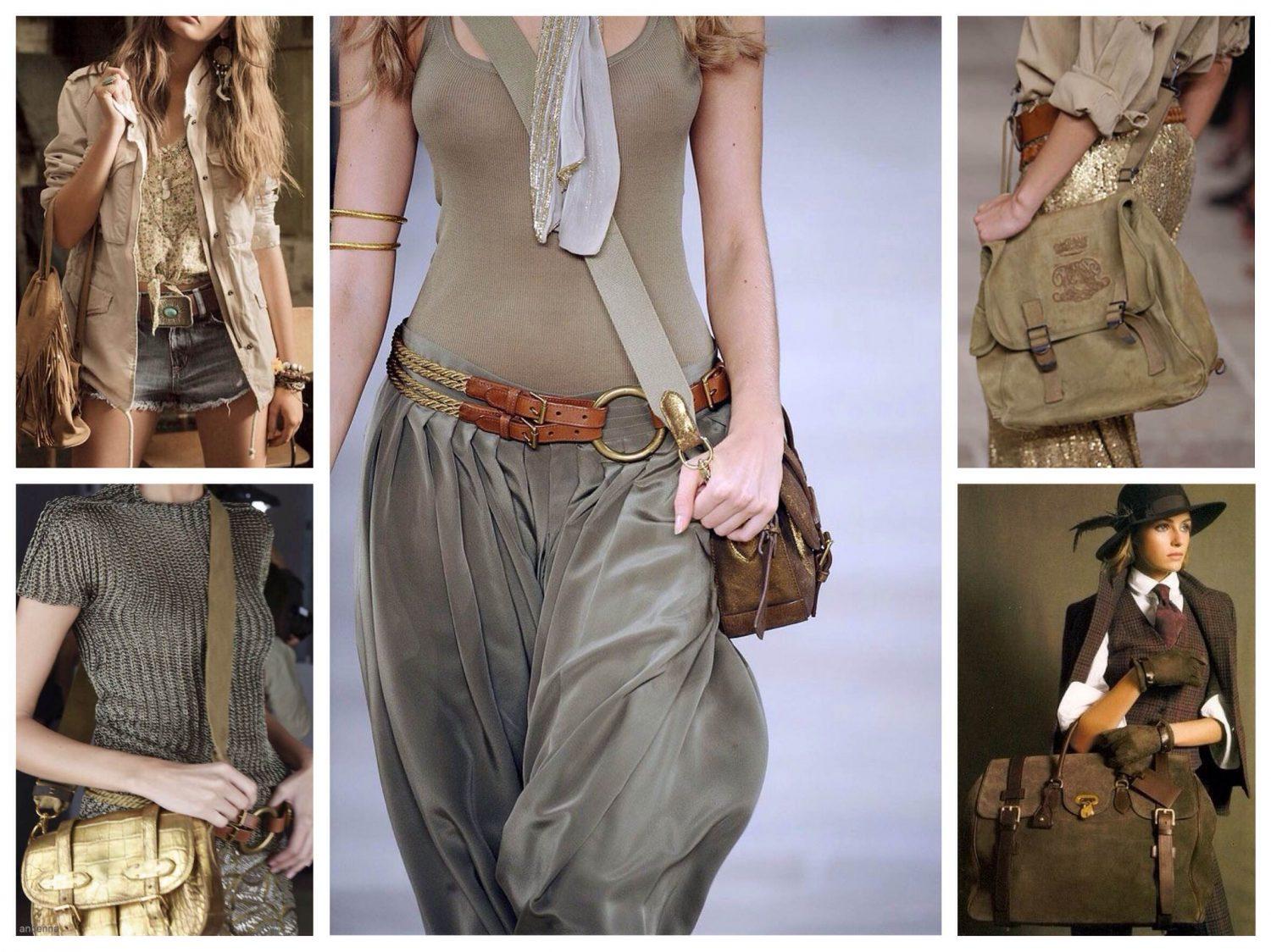 Кожаные ремни, шляпы и сумки в стиле сафари являются отличным дополнением к образу. Они могут быть в приглушенных тонах и иметь множество карманов и деталей, напоминающих о путешествиях и экспедициях.