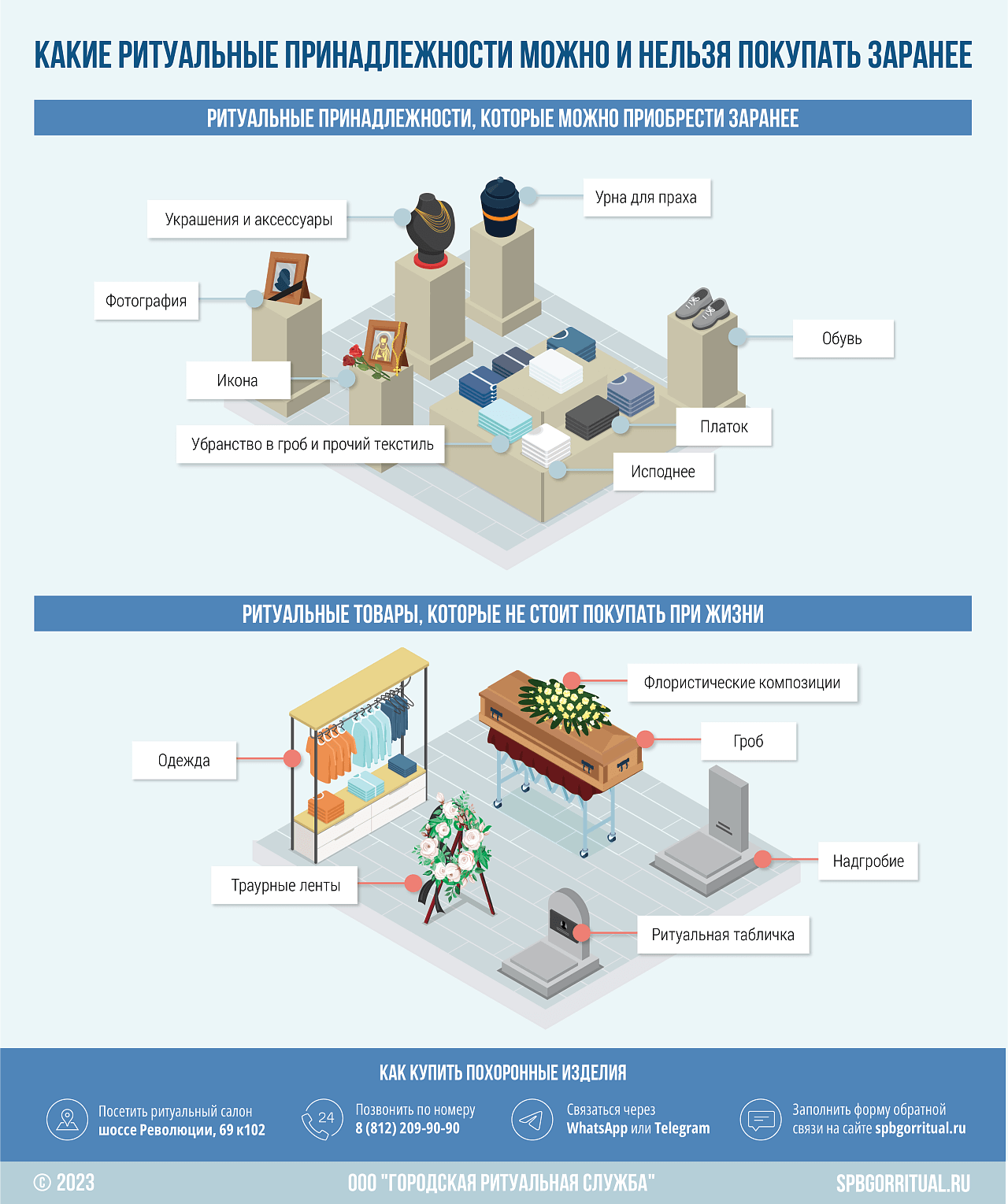 Между тем, если у человека есть желание приобрести что-то из вышеперечисленных ритуальных товаров при жизни и различные неудобства его не смущают, то осуждать этого не стоит. Возможно, что это помогает человеку принять сам факт своей будущей смерти, хоть с этим и не могут смириться его близкие.
