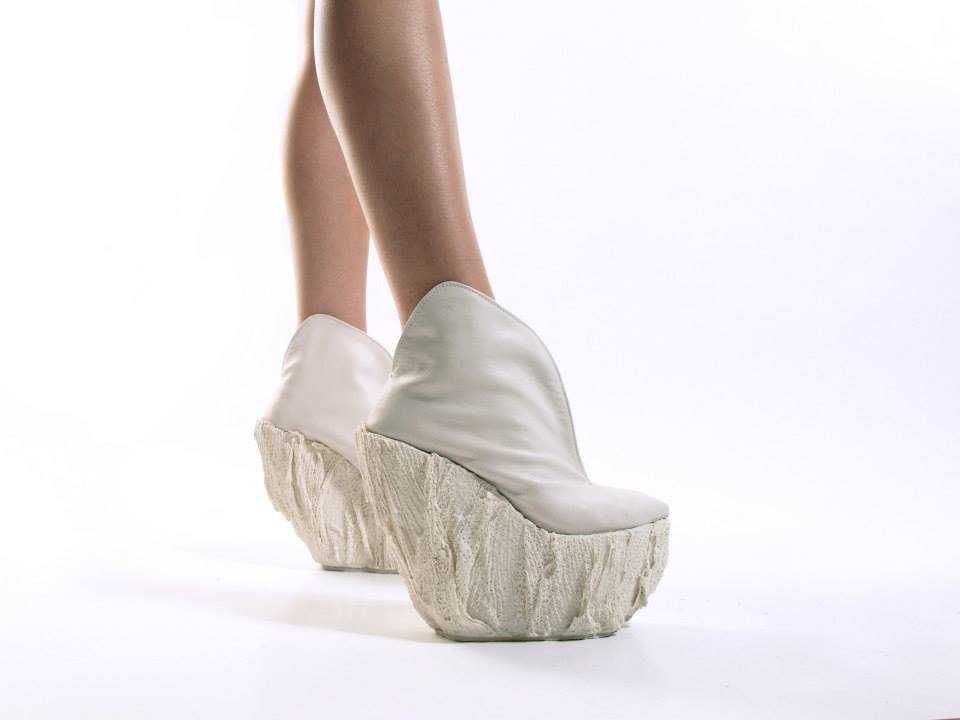 5-е место самой необычной обуви — «Обувь на высокой скошенной платформе без каблука»