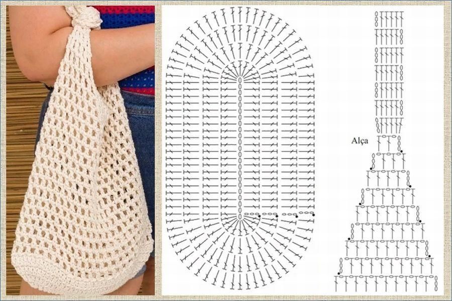 Схема вязки авоськи трапециевидной формы с лямкой-узлом. Практичность, универсальность и удобство в одной сумке.