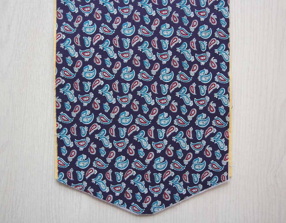 Чтобы сшить внутренний карман, сложите вырезанный прямоугольник пополам лицевыми сторонами внутрь и сделайте небольшие подрезы в ткани по краям сформированного кармана. Затем аккуратно расправьте края, чтобы получить прямоугольный карман. Прикрепите его к основной части сумки, скользящим стежком или ручным швом.