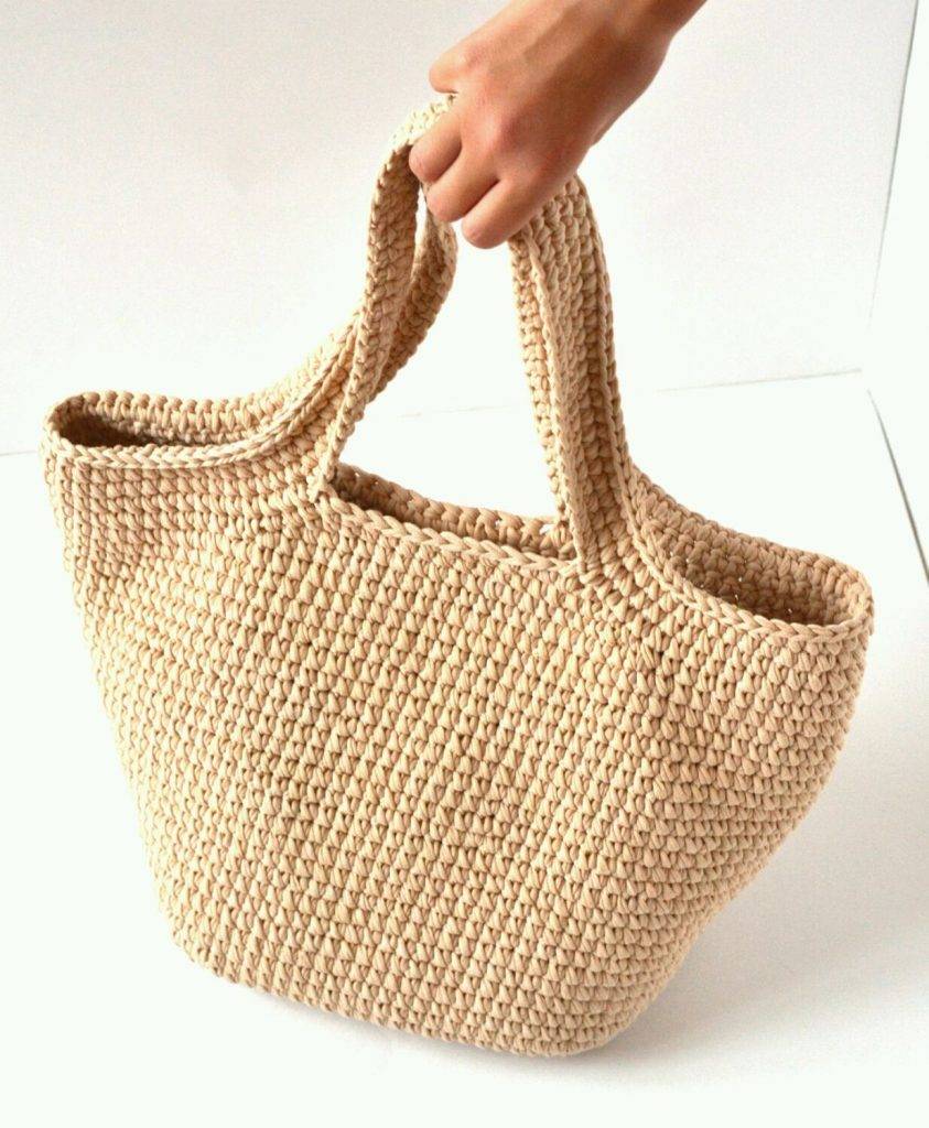 Из пропиленовой нити выйдет связать великолепную сумку для пляжа или хозяйственных покупок. Преимущества такого изделия очевидны – они не сильно пачкаются, так как грязь не въедается в само волокно. А в случае, если всё же сумка загрязняется, то постирать её очень просто и к тому же после этой процедуры она не изменяет своих характеристик. Для того чтобы связать среднего размера сумку, потребуется около 800 м – а это 4 мотка 50 гр. ниток. Самое главное, начиная работу – это определиться с габаритами сумки.