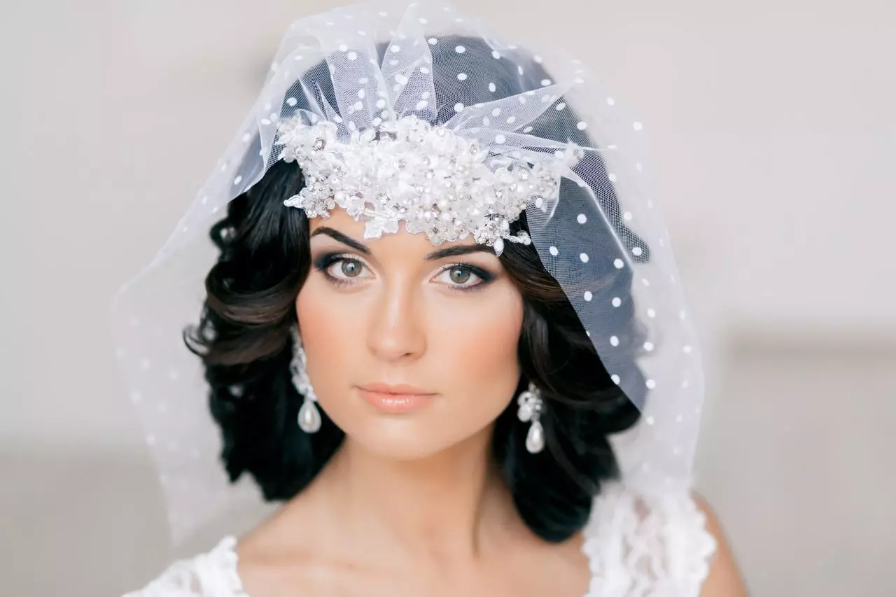 - Для коротких стрижек лучше не использовать фату вообще, а склониться к цветку или драгоценной броши в волосах;