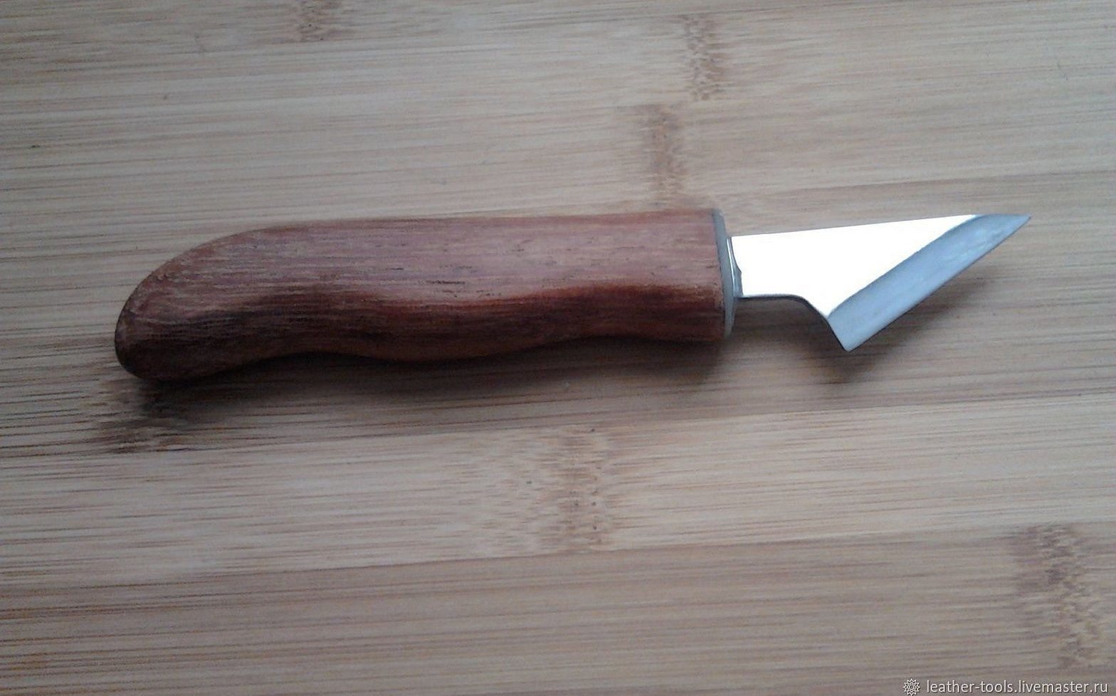 В процессе работы потребуется разрезать кожу. Это более удобно делать с помощью специального сапожного ножа или использовать для этого строительный аналогичной конструкции.