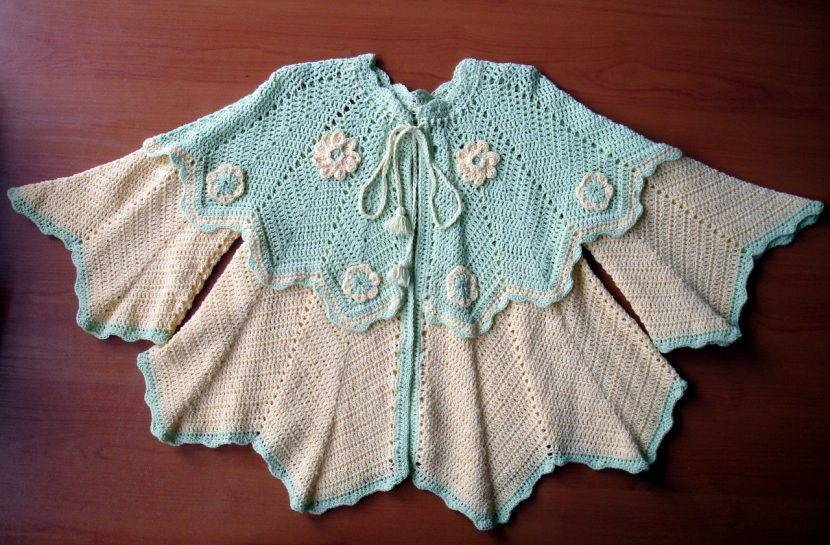 Пончо с аккуратно довязаными рукавчиками крючком