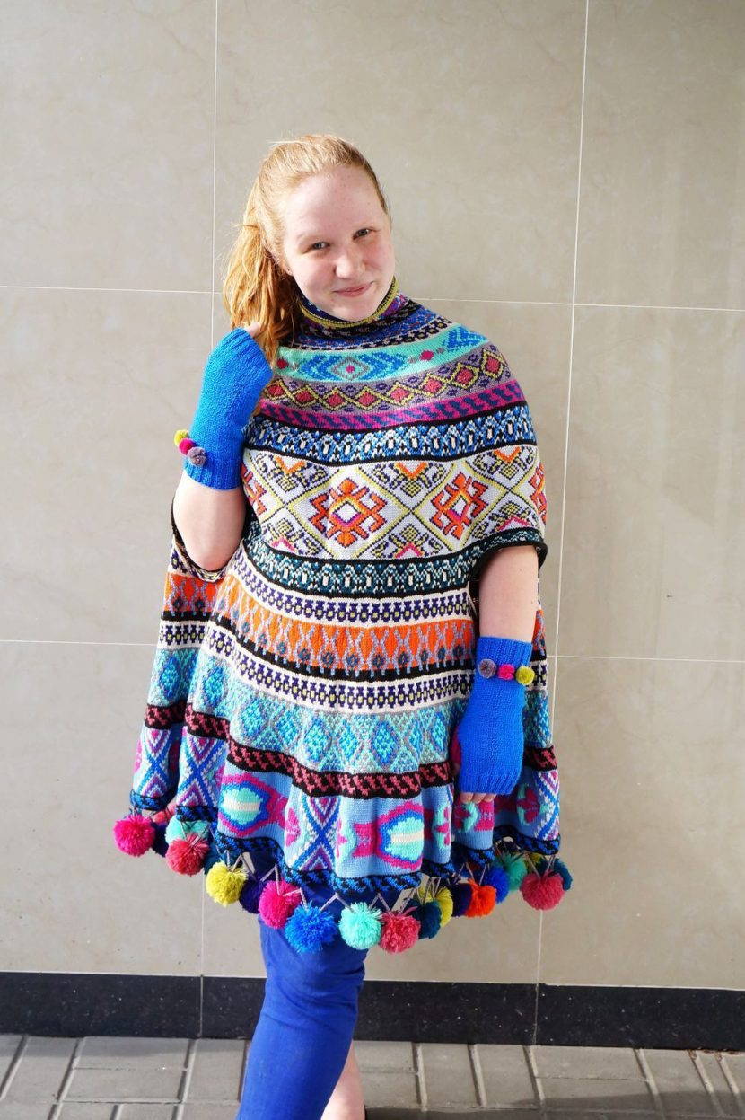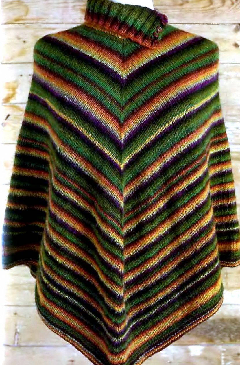 Главная особенность пончо — отсутствие рукавов. Но современные модели могут иметь некое подобие рукава, что придает модели оригинальный вид.