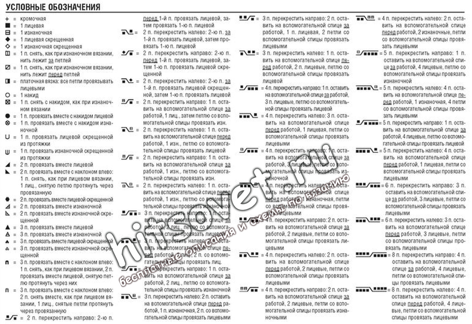 - лиц.скр. — скрещенная лицевая, вяжется за переднюю стенку с поворотом