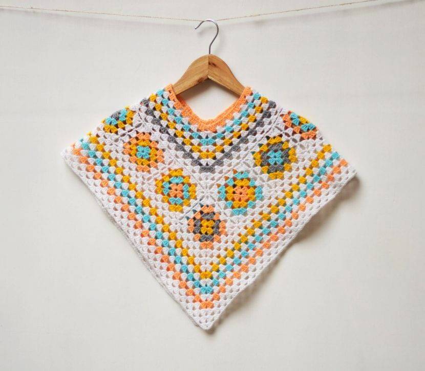 Детское пончо вязаное крючком состоит из квадратов
