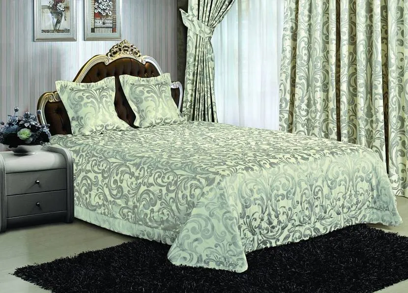 Данный вид материала отличается струящейся фактурой и атласным блеском. Такие портьеры обладают достаточным весом и жесткостью, чтобы создавать с их помощью замысловатые драпировки и складки. Жаккард подходит для создания штор с четкими геометрическими контурами.