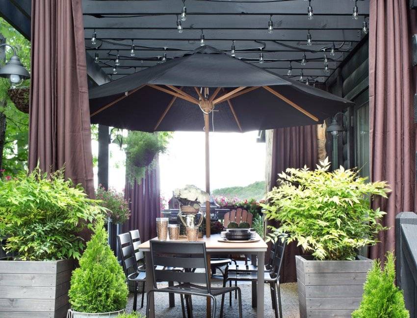 Существует немало стилей, в которых декорируют шторы для беседки: