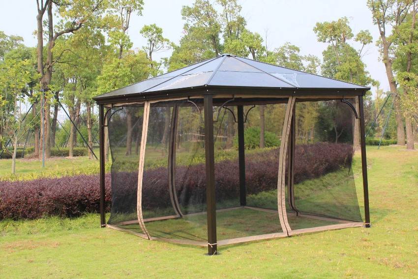 Для беседок, подвергающихся воздействию сильного солнечного света, вес ткани также имеет большое значение.
